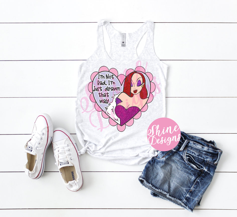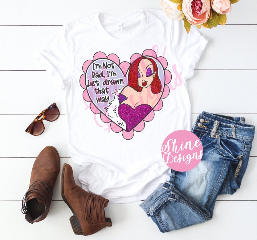 If you are a fan of Roger Rabbit, you will love our, I'm Not Bad, I'm Just Drawn That Way, Shirt. This glitter and plain design comes on a white color shirt, you pick the style!