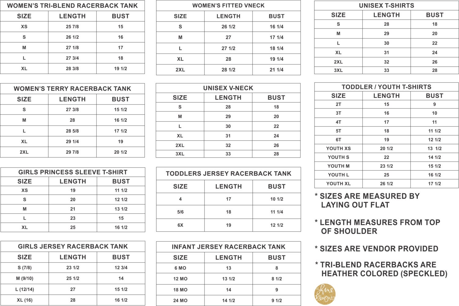 Shirt is absolutely adorable with just the perfect amount of sparkle. I order two of these (a shirt for my twin sister, a tank for myself). Even with the varying size differences and (requested) color change, the design on both shirts is executed flawlessly and adorably. Will definitely be ordering from this seller again in the future! For those curious about sizing, this seller uses the same tanks as Chin Up Apparel. My measurements are 38-31-40 and I ordered a large.