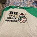 For those of you who love BB8 and the holidays, this is the perfect shirt for you! This all glitter design comes on a white heather baseball shirt, you choose the color sleeves! Design colors vary per shirt color.