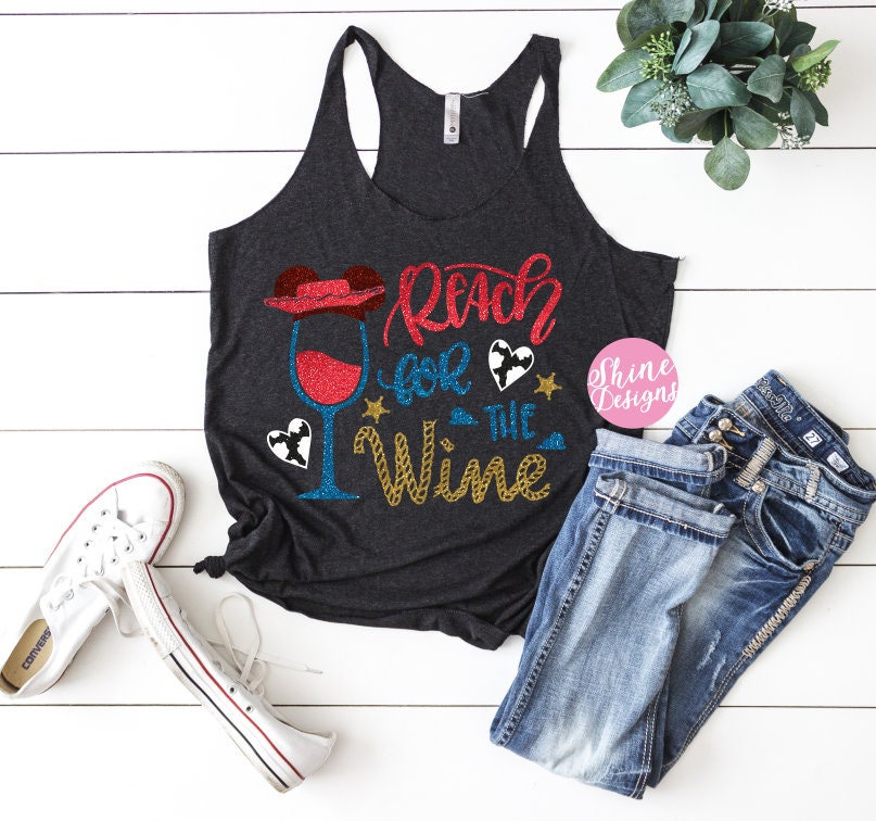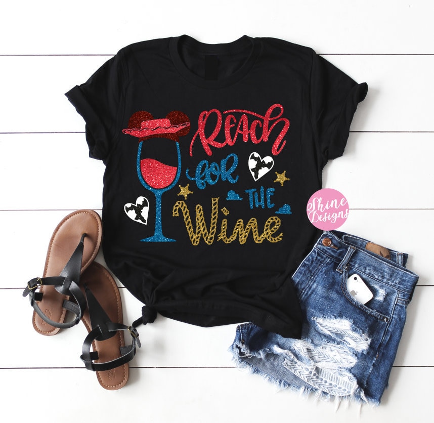 Reach For The Wine Glitter Shirt - Food and Wine Toy Story Glitter Shirt - Woody Shirt